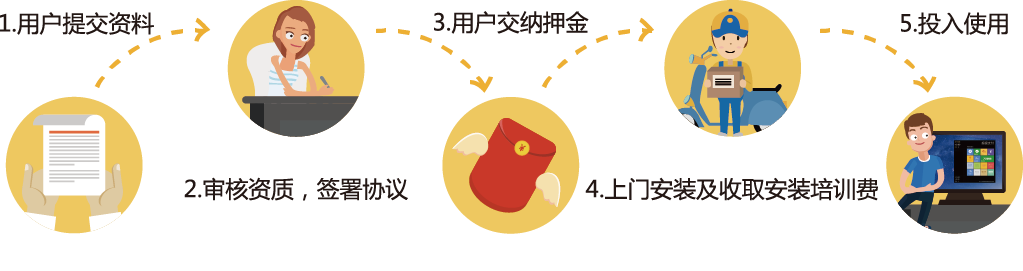 您只需要提供企业营业执照、组织机构代码证、税务登记证三证照片(三证合一只需营业执照照片)、法人身份证正反面照片,并填写领美超级收银机注册申请表,即可拿走一台免费的超级收银机。